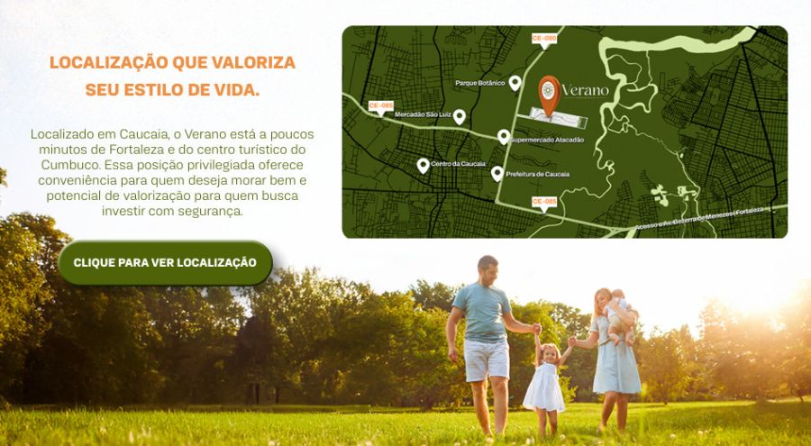 Imagine viver em um endereço projetado para oferecer praticidade, segurança e valorização: assim nasce o Verano Condominium, o novo condomínio de lotes em Caucaia. Localizado a poucos metros da Polícia Rodoviária Federal e às margens da CE-085, o empreendimento proporciona acesso rápido às principais vias da região, garantindo mobilidade e comodidade no seu dia a dia.